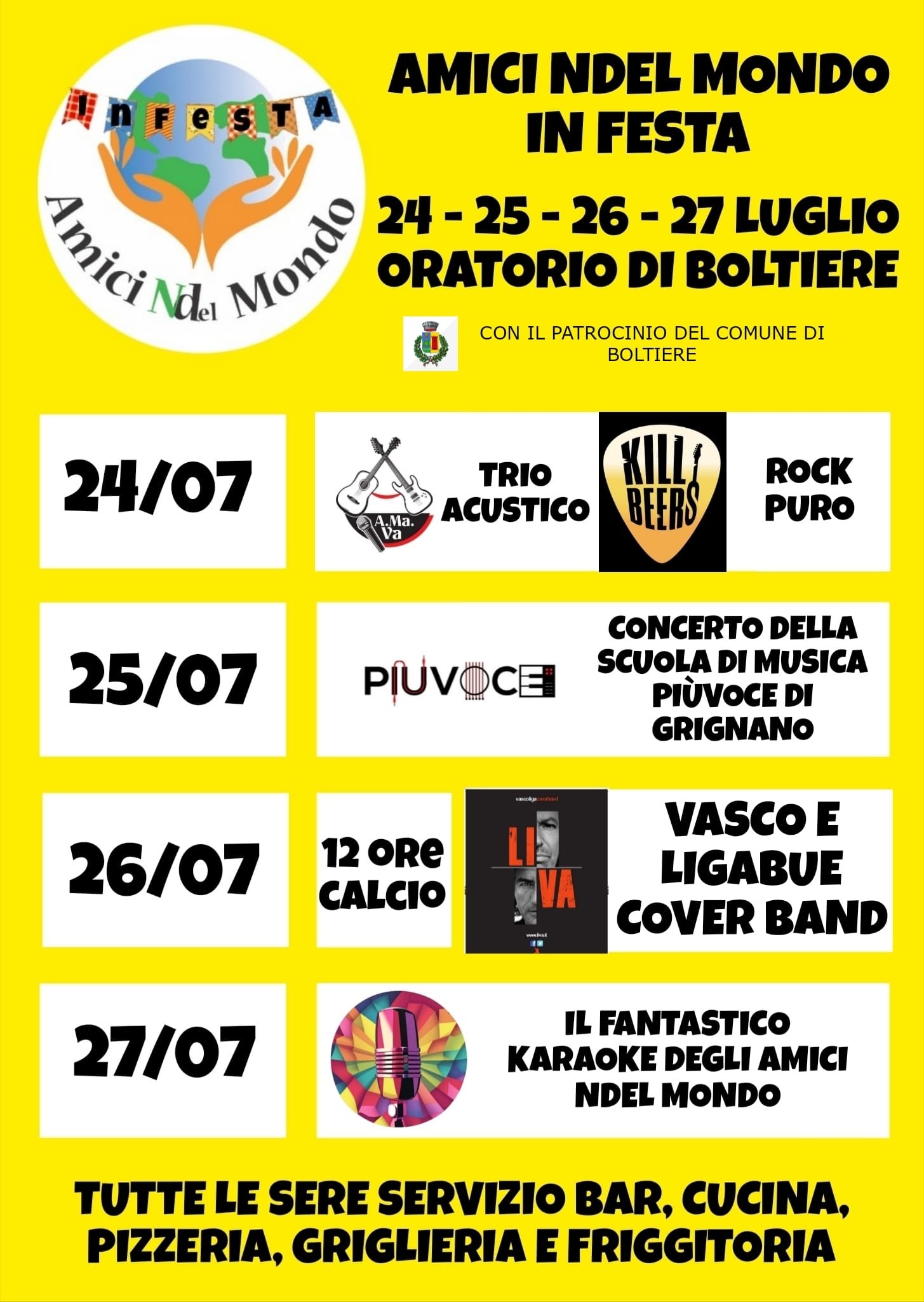 L'associazione Amici ndel mondo invita alla festa presso l'oratorio di Boltiere.