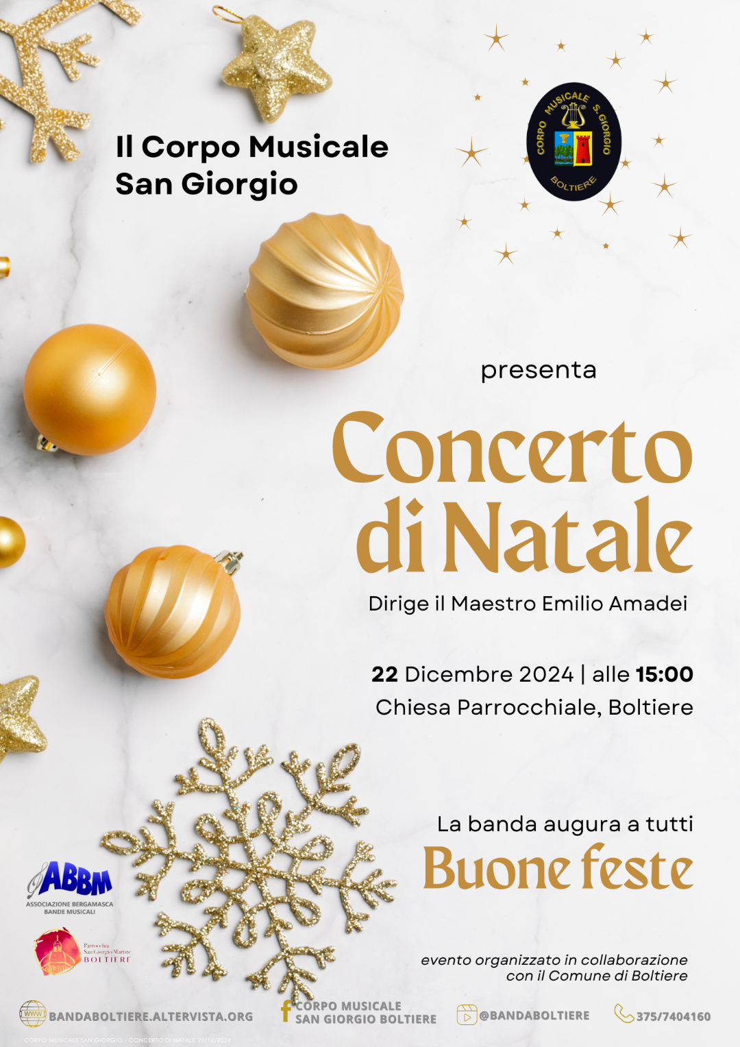 Il Corpo Musicale San Giorgio invita al Concerto di Natale che si terrà domenica 22 dicembre alle ore 15.00 presso la Chiesa Parrocchiale.