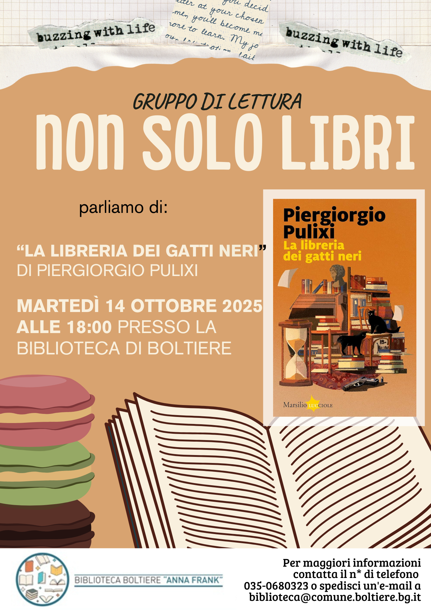 L'incontro di ottobre del Gruppo di Lettura si terrà martedì 14 alle ore 18:00 presso la biblioteca di Boltiere.