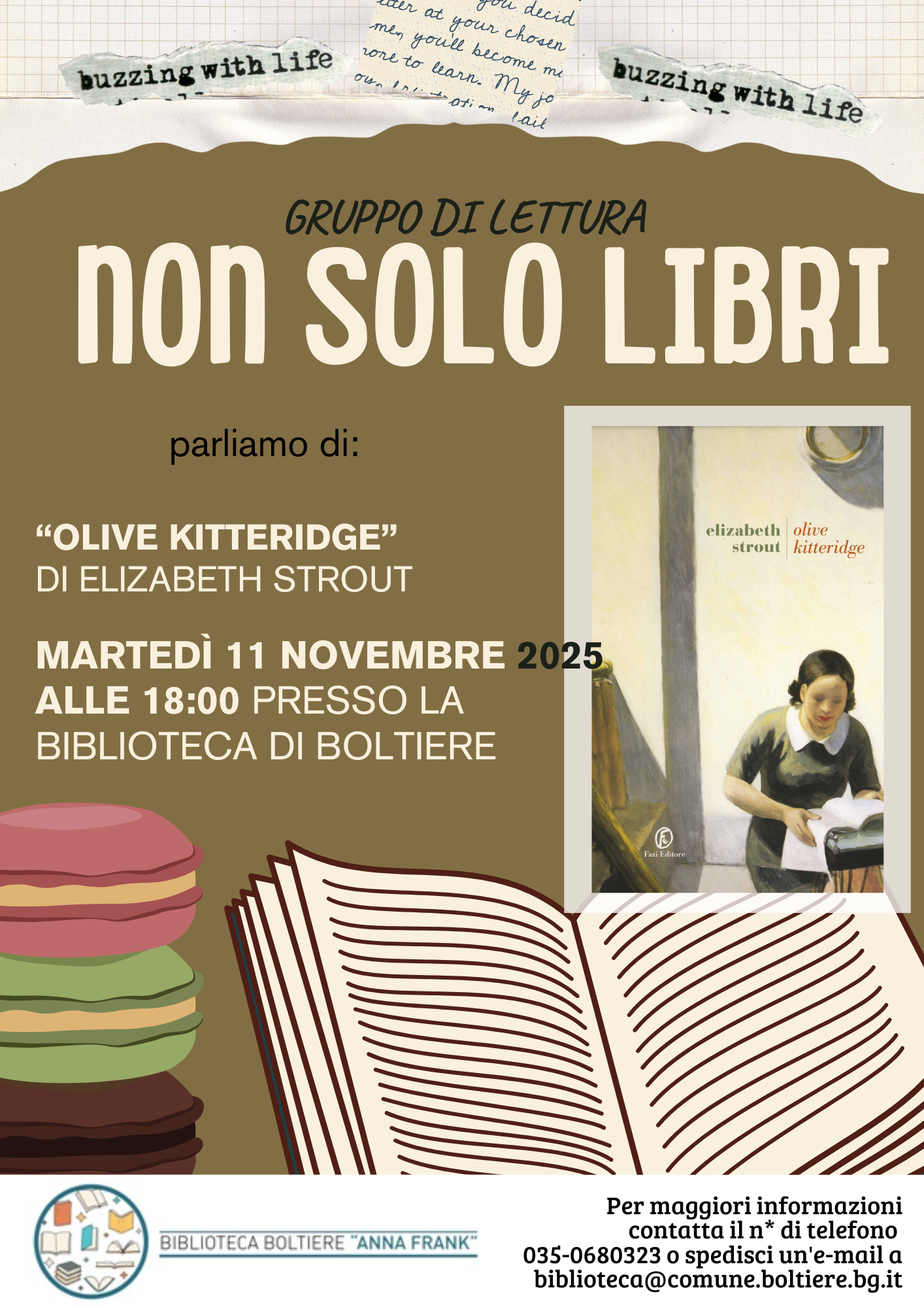 Ci incontreremo per parlare del libro "Olive Kitteridge" di Elizabeth Strout, vincitore del Premio Pulitzer per la narrativa 2009.