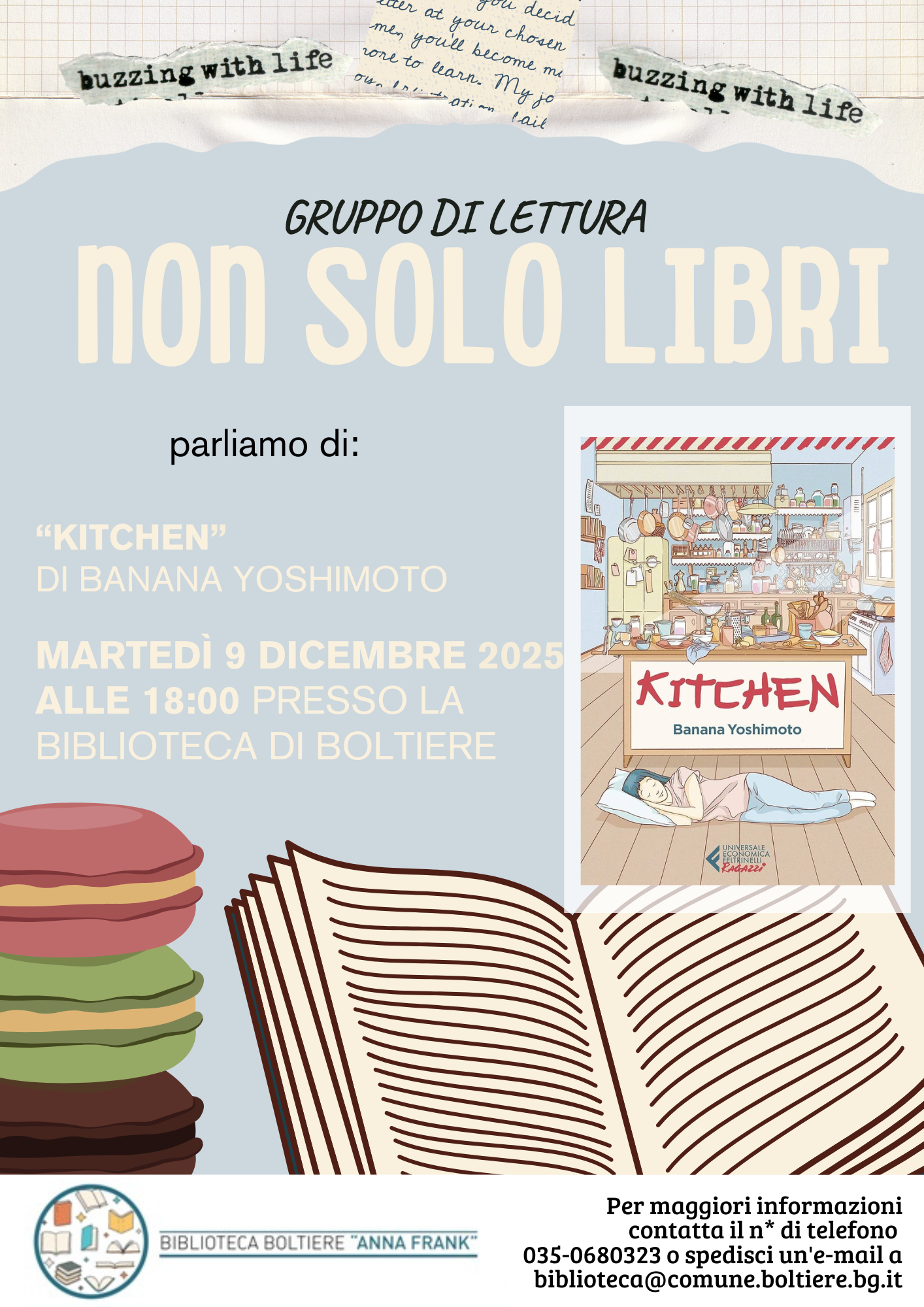 Ultimo incontro del gruppo di lettura "Non solo libri" per l'anno 2025 sarà martedì 9 dicembre alle 18:00 presso la biblioteca.