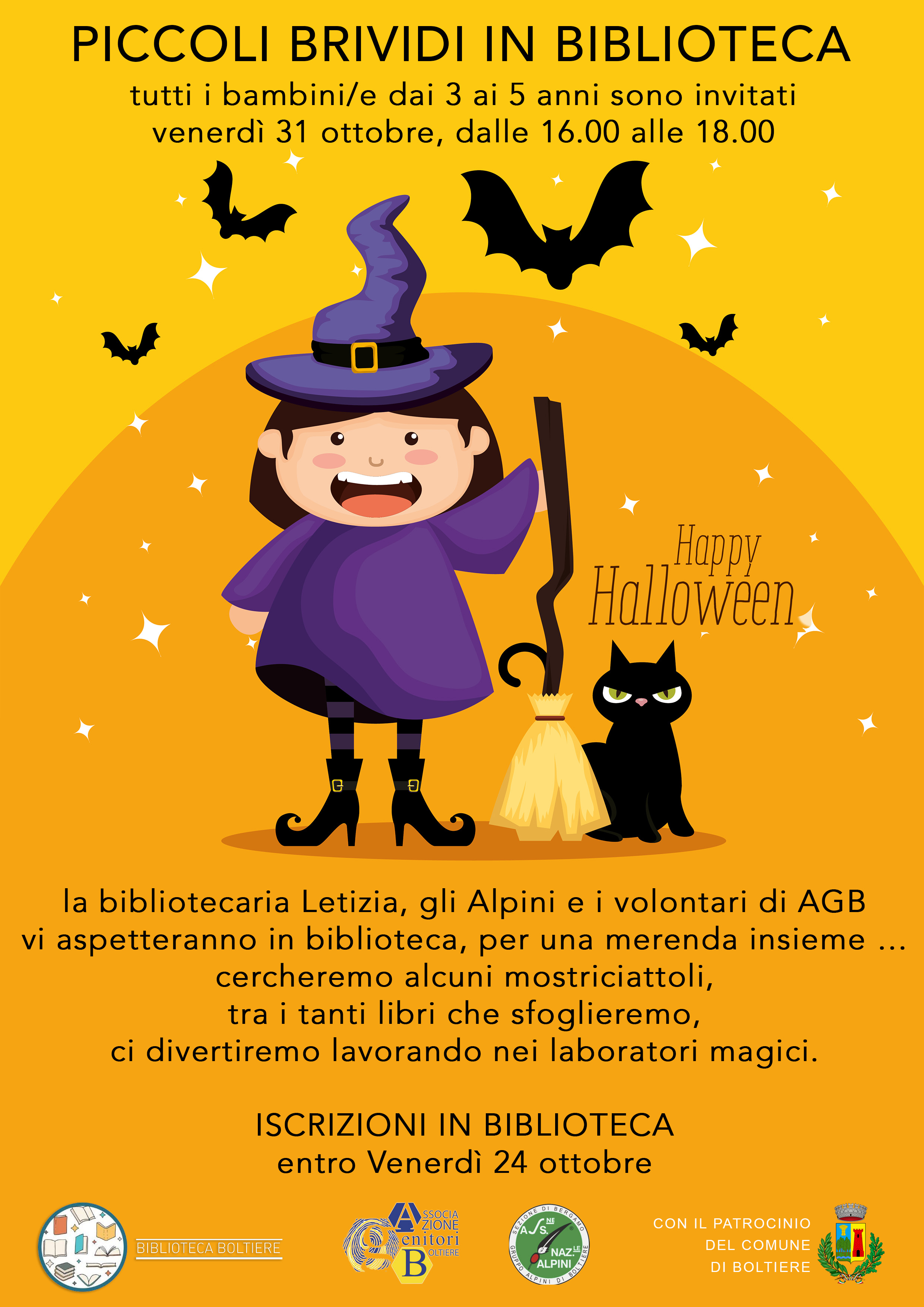 La bibliotecaria Letizia, gli Alpini e i volontari di AGB, aspetteranno i bambini per una merenda insieme, per cercare i mostriciattoli nascosti nelle pagine dei libri e per divertirsi con i laboratori magici.